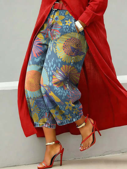 Women's Vintage Flower Pattern Print Casual Jeans – lolonb