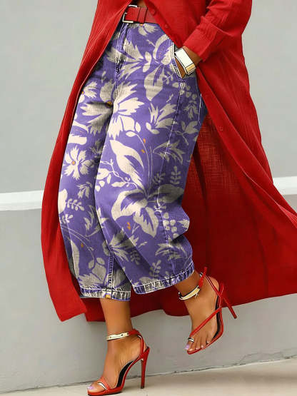 Women's Vintage Flower Pattern Print Casual Jeans – lolonb