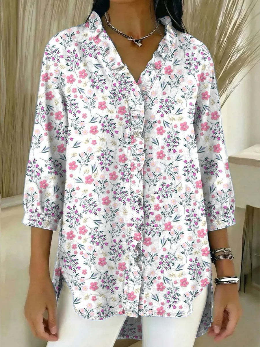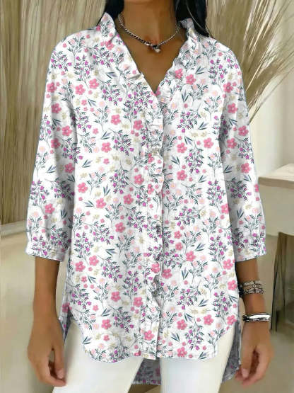 Women's Vintage Flowers Print Casual Ruffled Shirt – lolonb