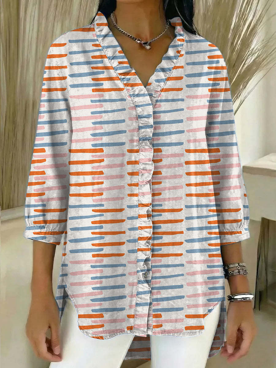 Women's Vintage Geometric Lines Print Casual Ruffled Shirt