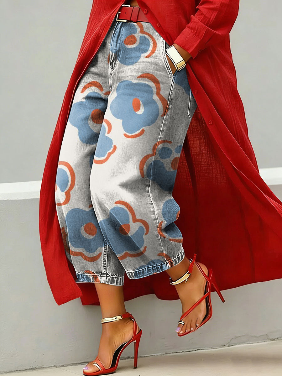Women's Vintage Pattern Print Casual Jeans – lolonb