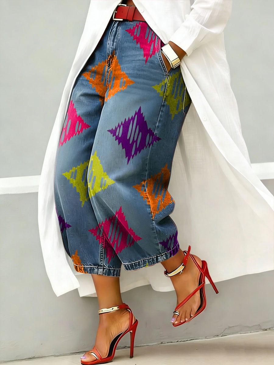 Women's Vintage Pattern Print Casual Jeans – lolonb