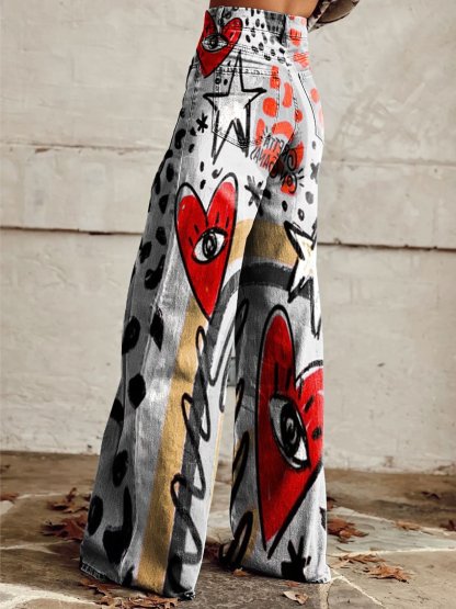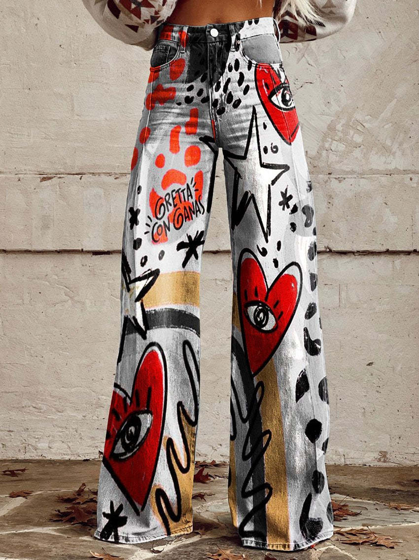 Women's Vintage Print Casual Wide Leg Pants