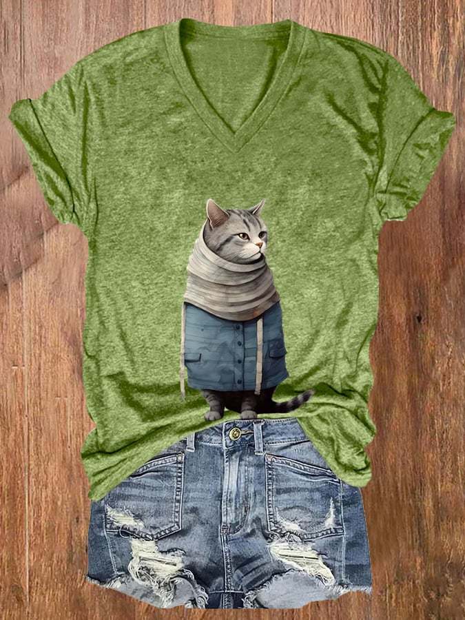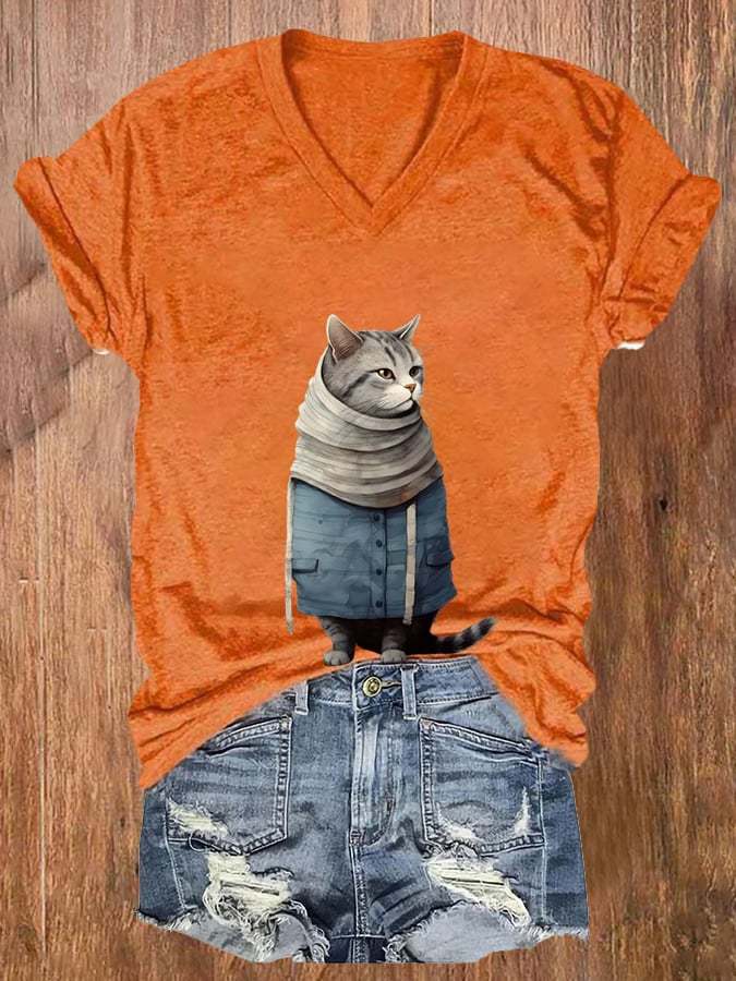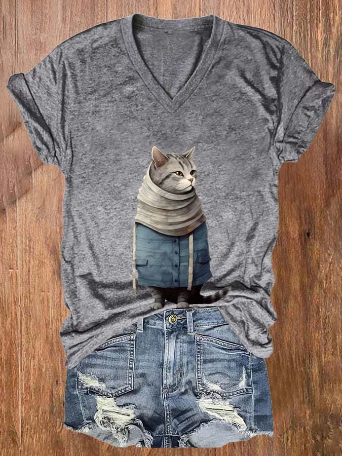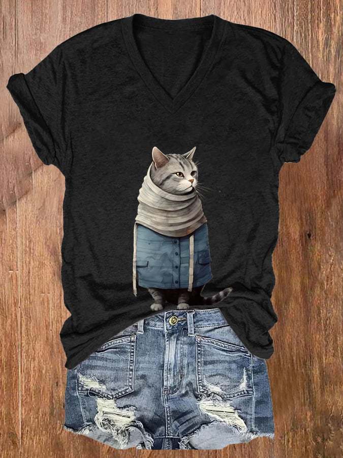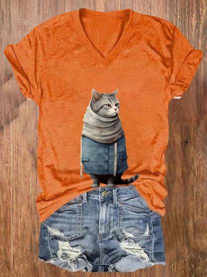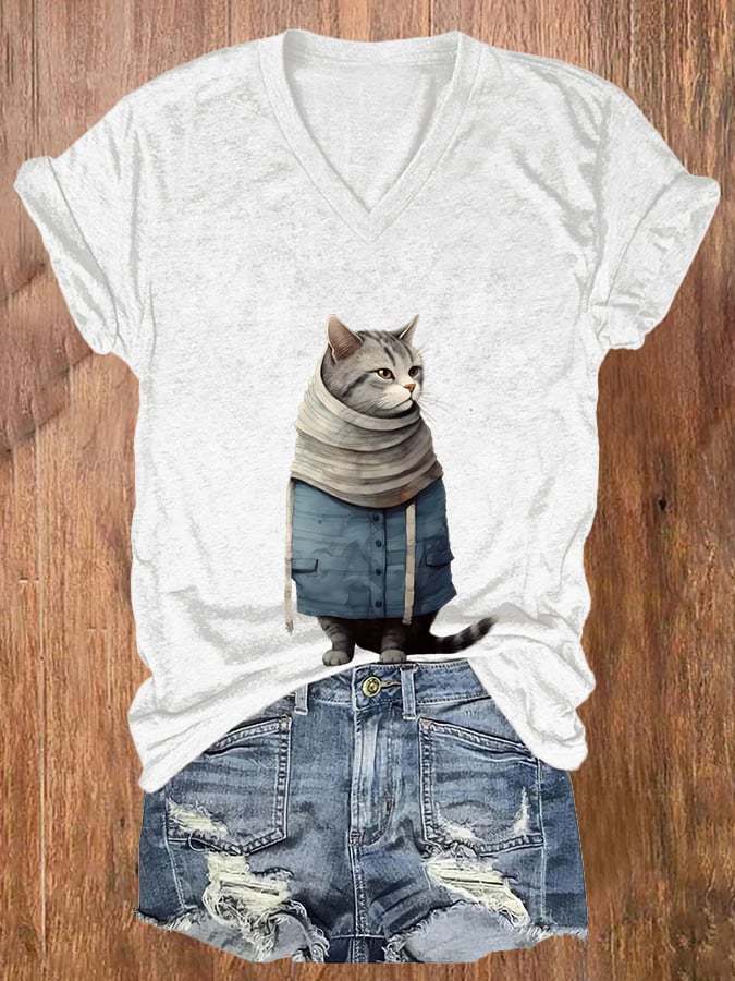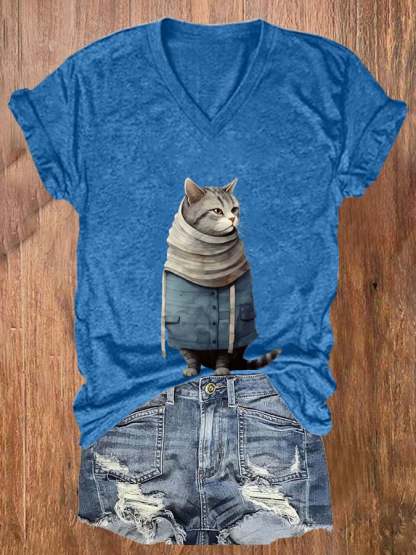🔥Buy 3 Get 10% Off🔥Women's Winter Art Cat Print Casual T-Shirt