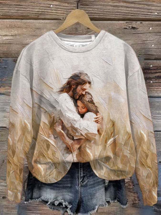Women's Woman Safe In His Arms Print Casual Round Neck Sweatshirt
