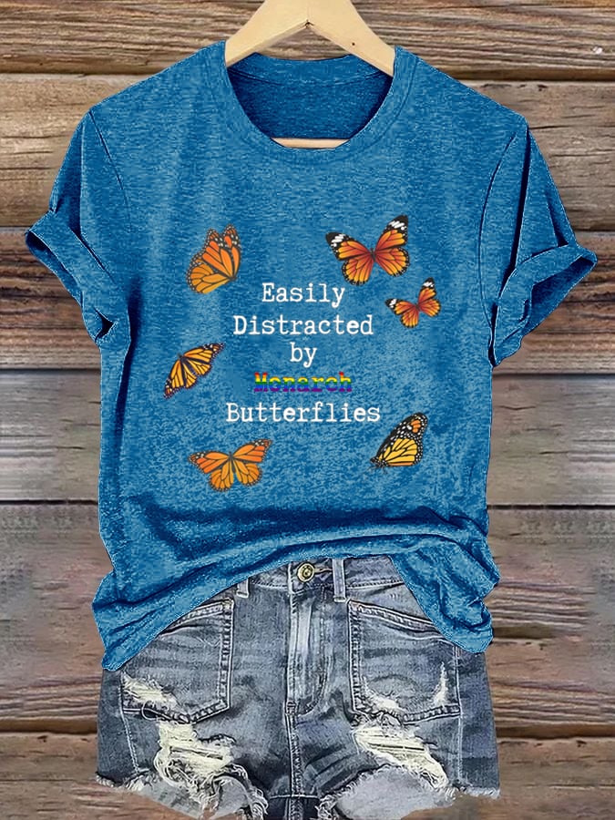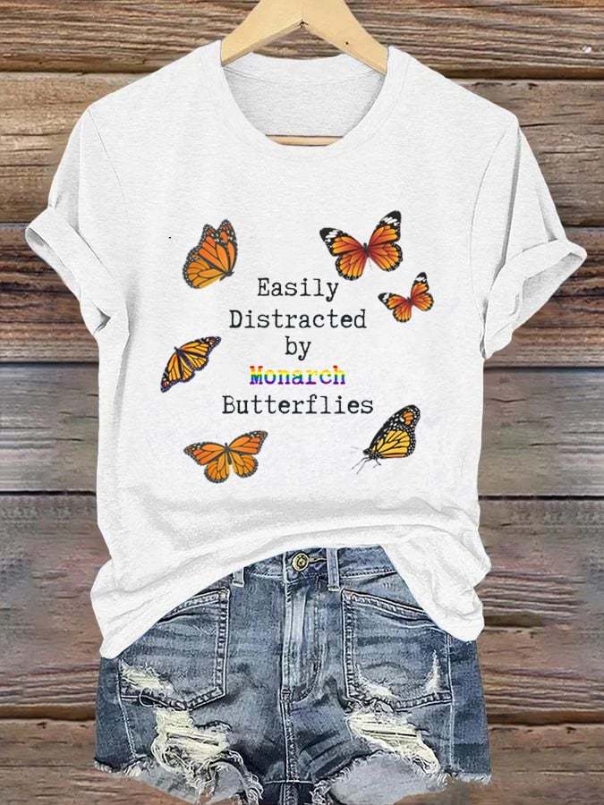 Women'sEasily Distracted By Monarch Butterflies Printed T-Shirts