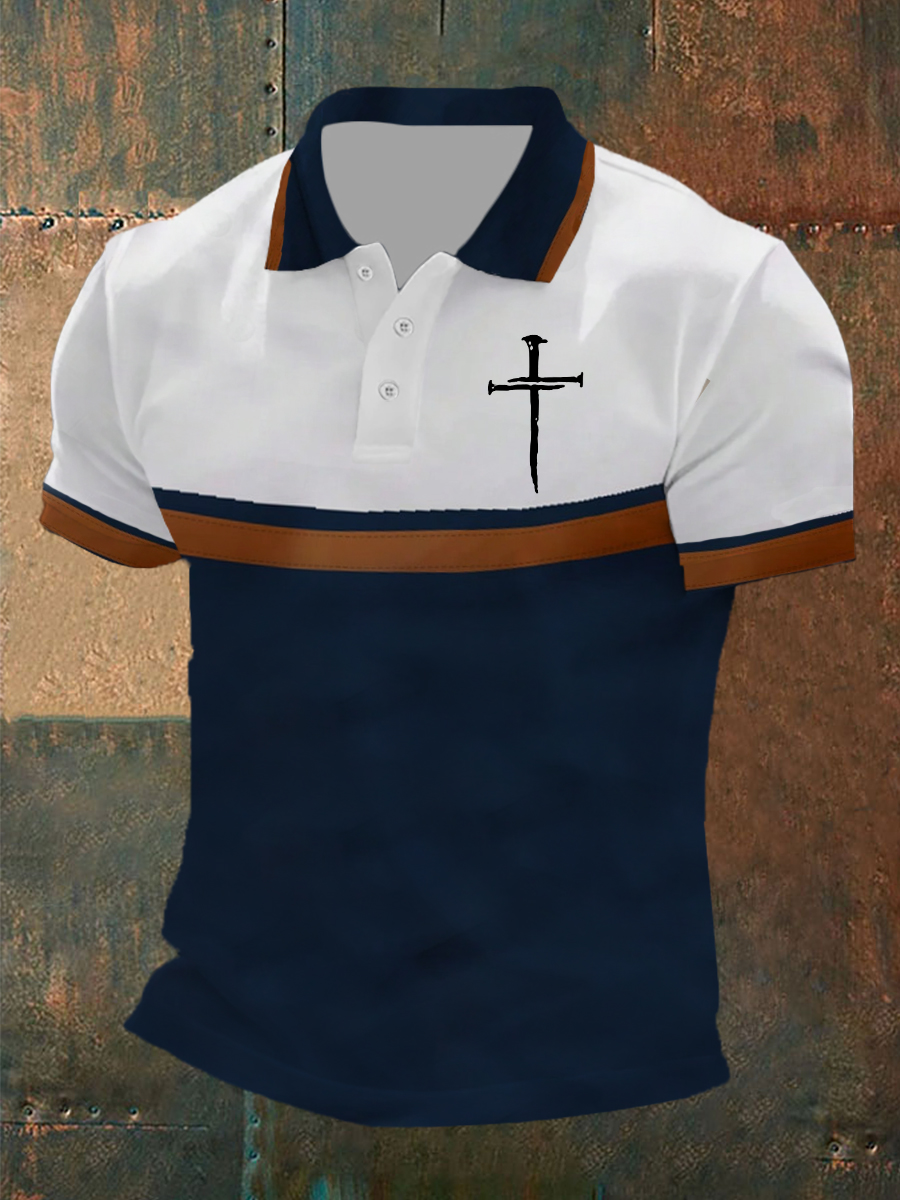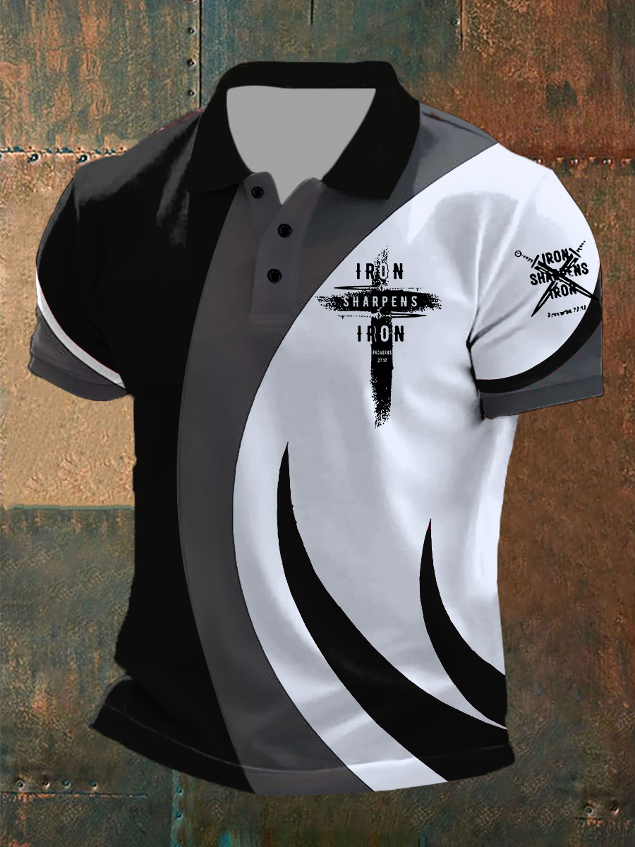 Men's Iron Sharpens Iron Faith Cross Printed Short-sleeved POLO T-shirt