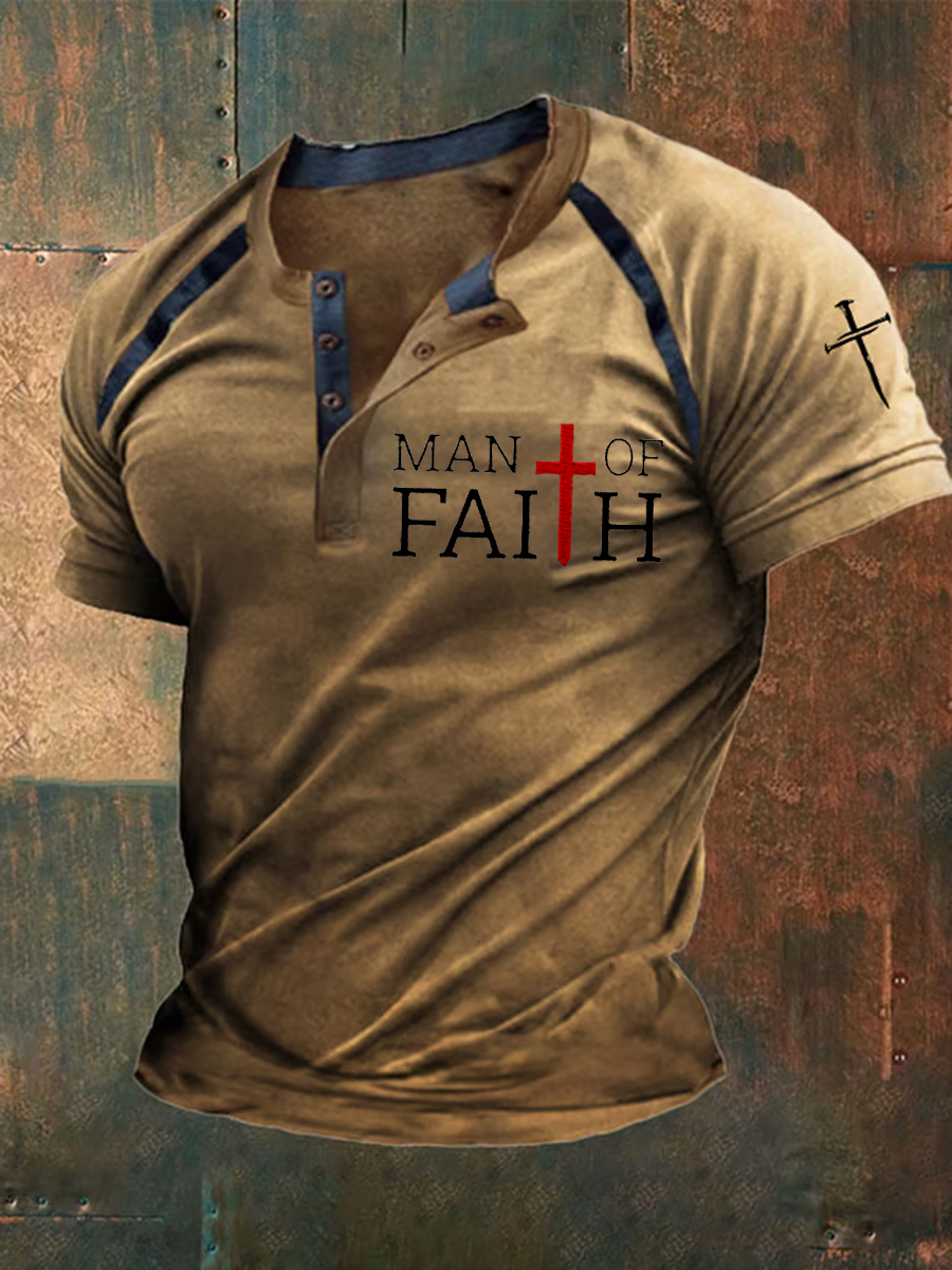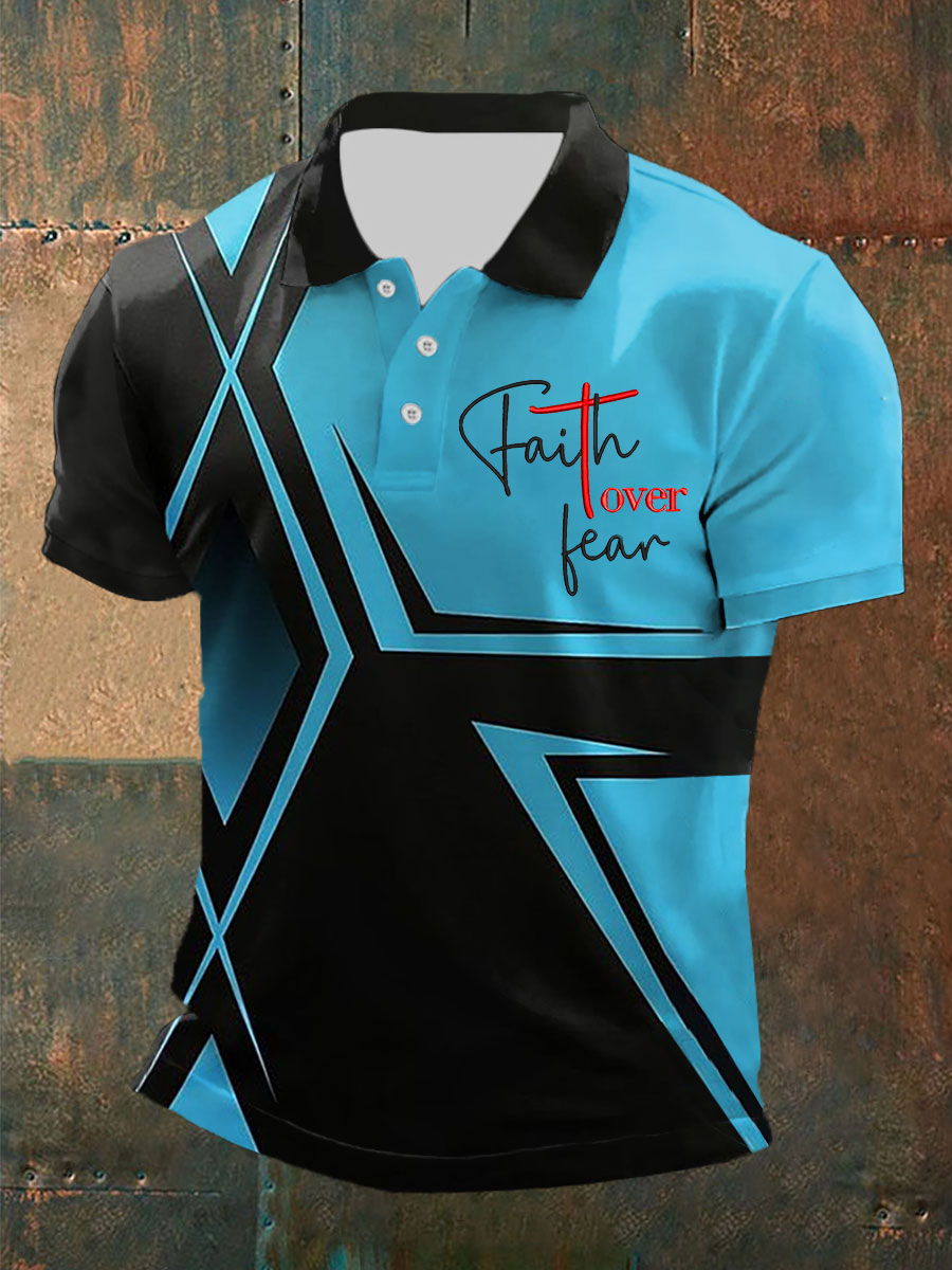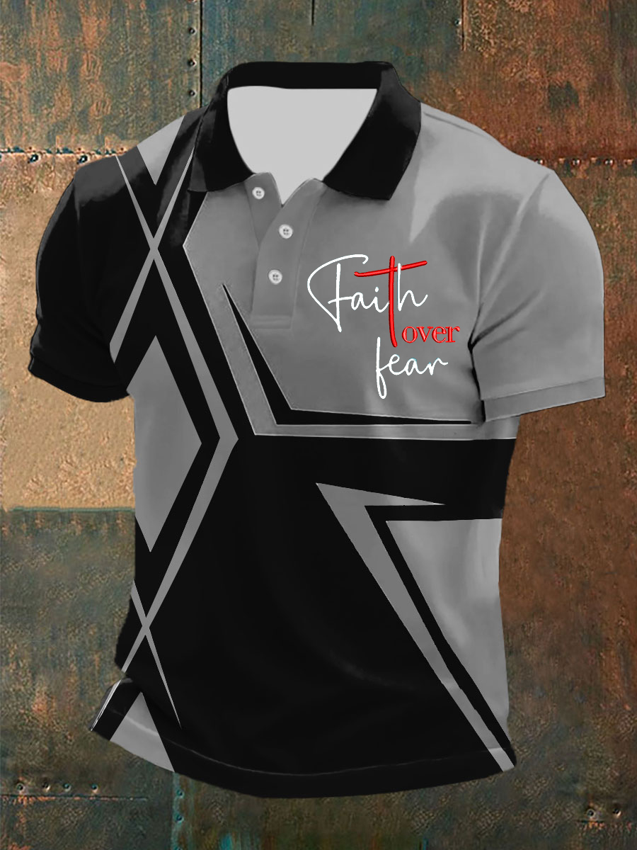 Men's Faith Over Fear Cross Printed O-Neck Short Sleeve POLO T-Shirt