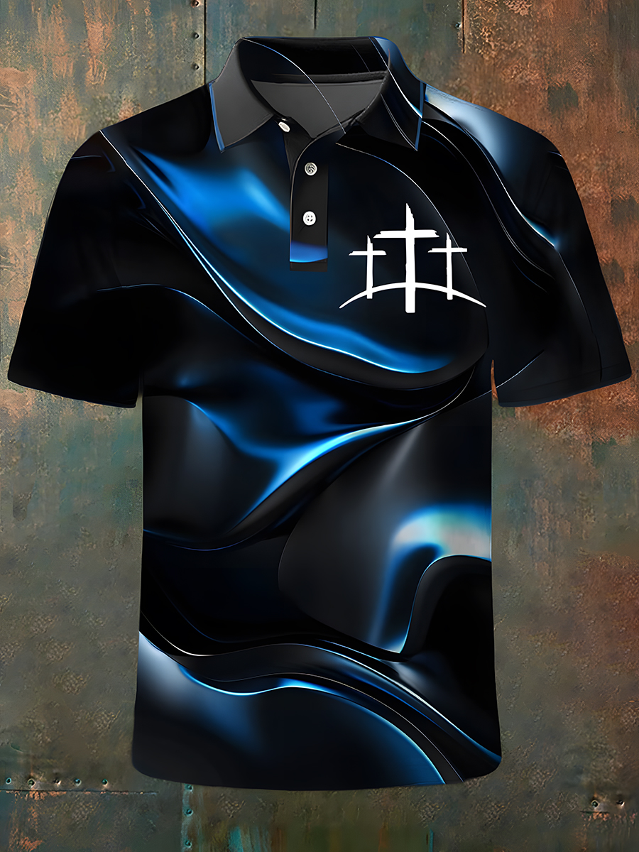 Men's Faith Cross Printed Short Sleeve Polo Shirt