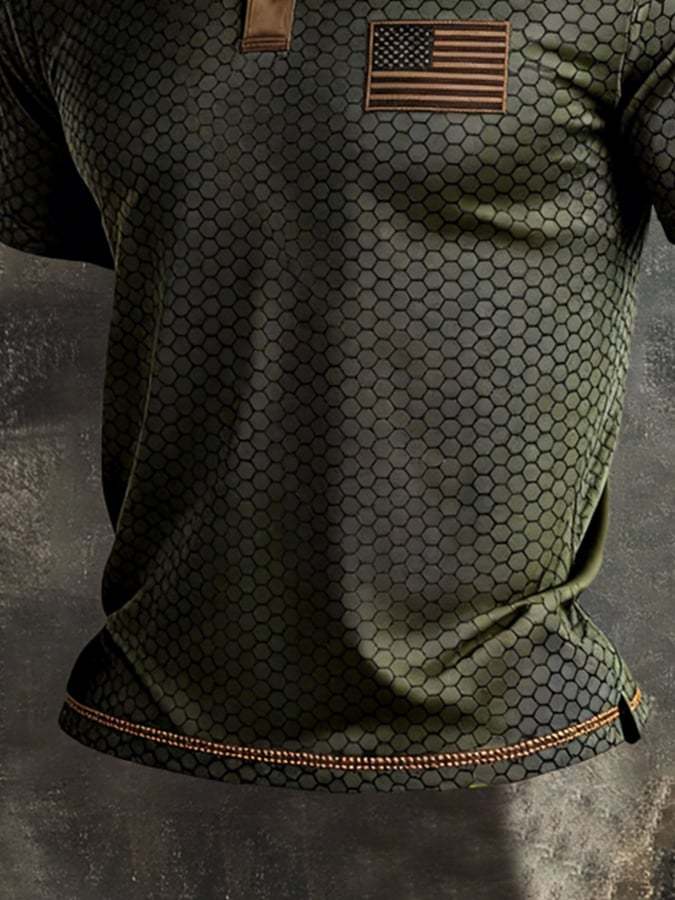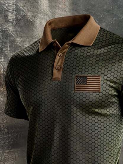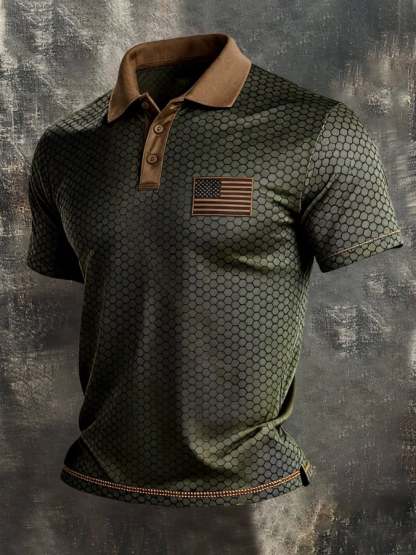 Men's Retro Patriot Color Block Polo Collar Short Sleeve