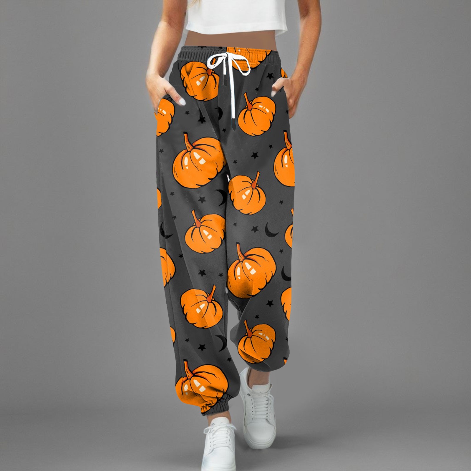Women's Casual Print Halloween Elastic Waist Loose Pencil Pants