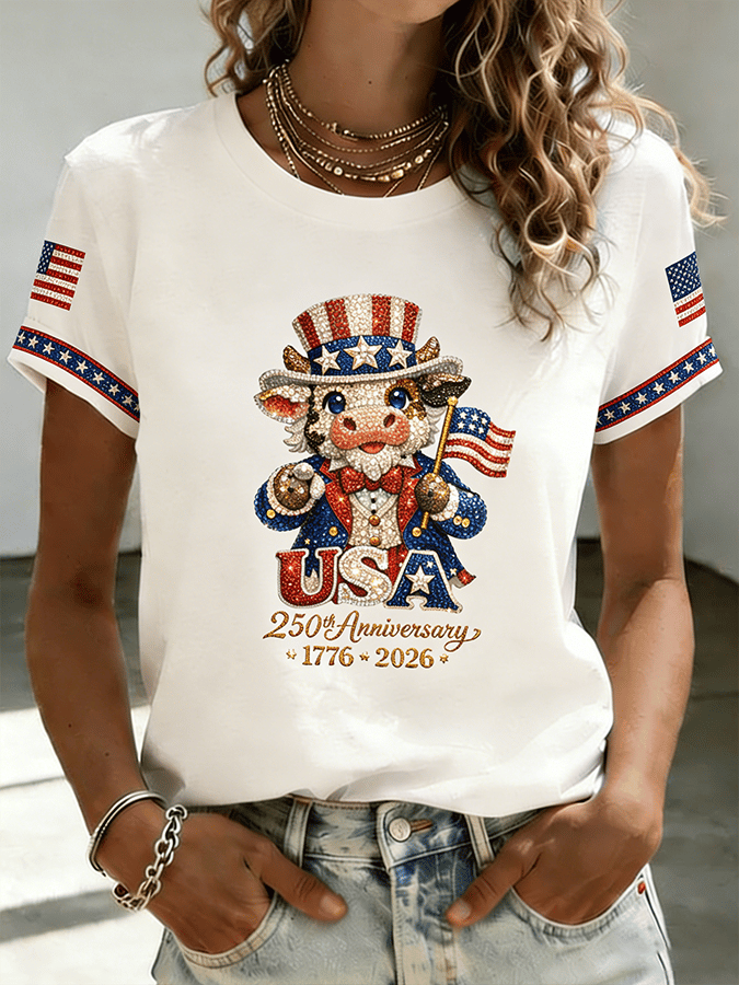 Women's 250th Anniversary Print Retro Short-Sleeve T-Shirt
