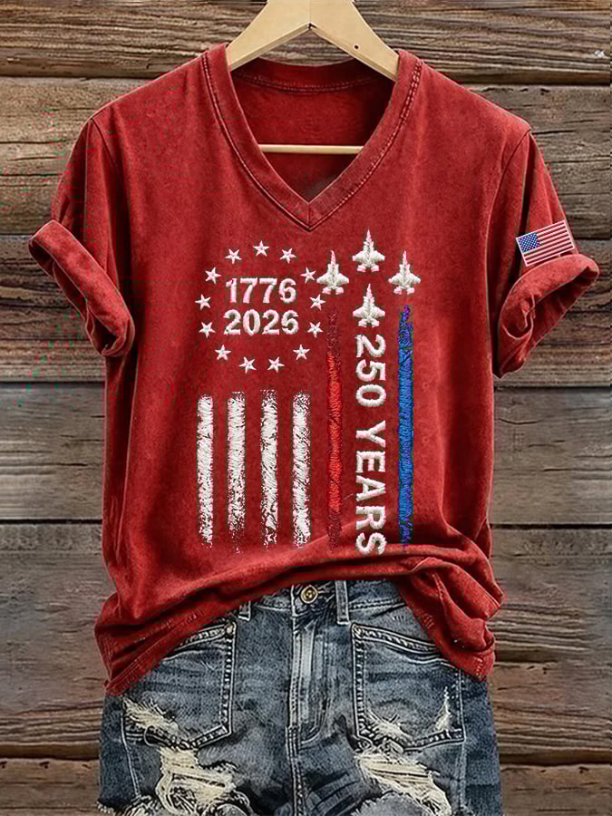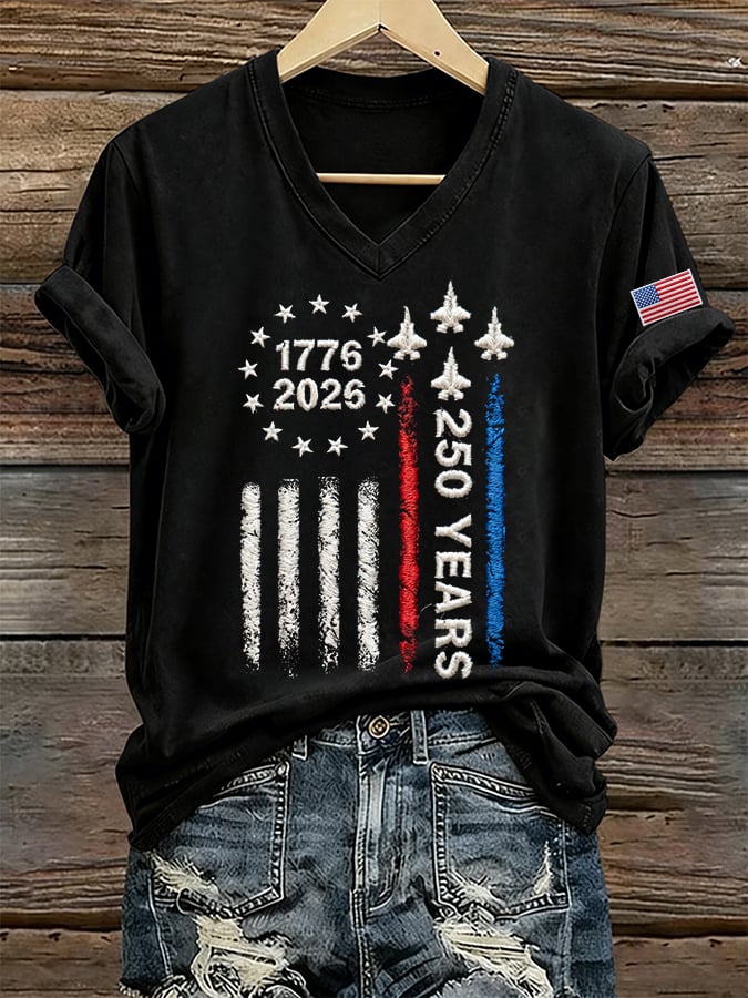 Women's 250 Years Of Freedom Print V Neck T-shirt