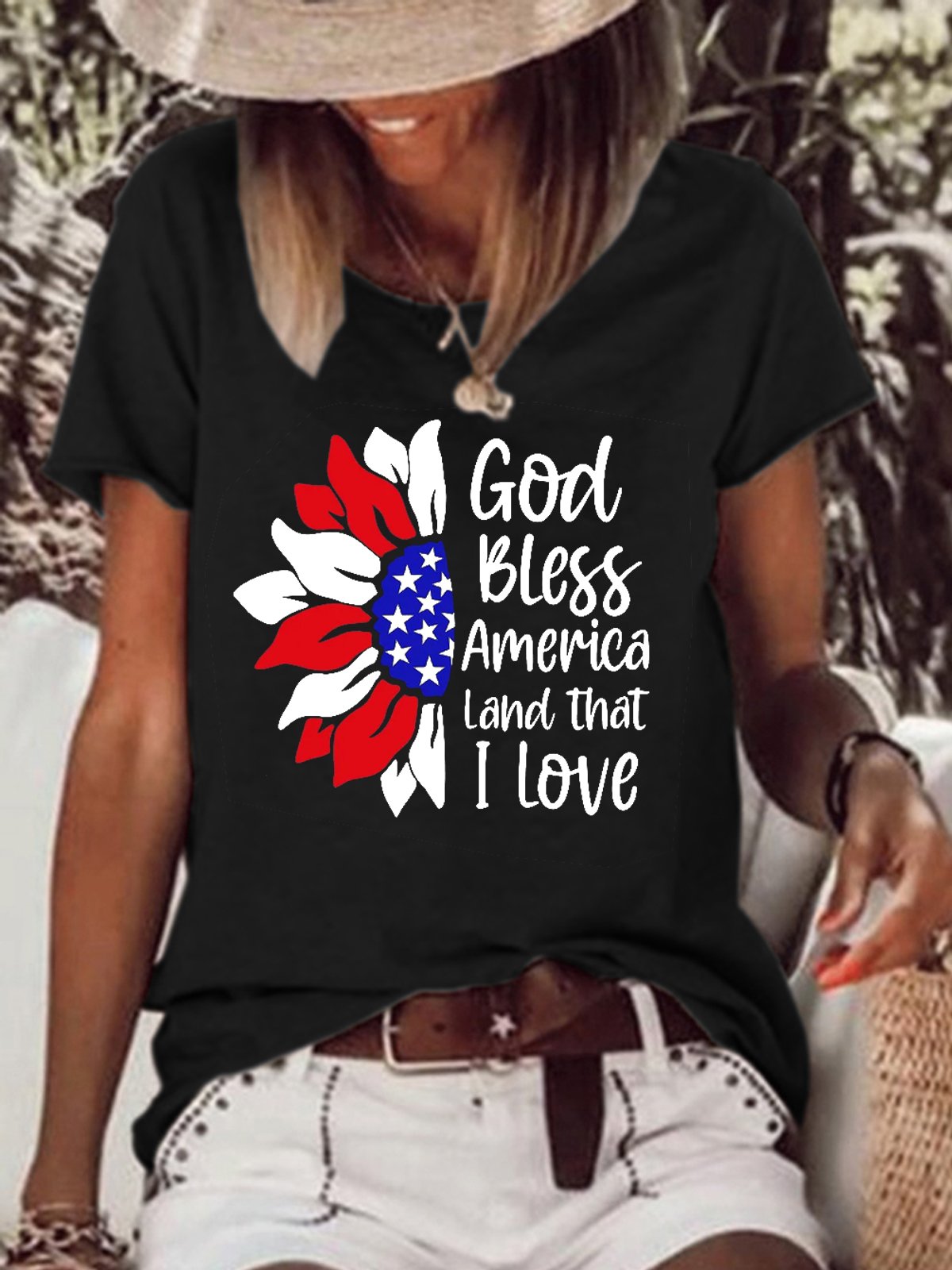 Sunflower American Flag God Cotton Blends Casual Letter Short Sleeve T-Shirt