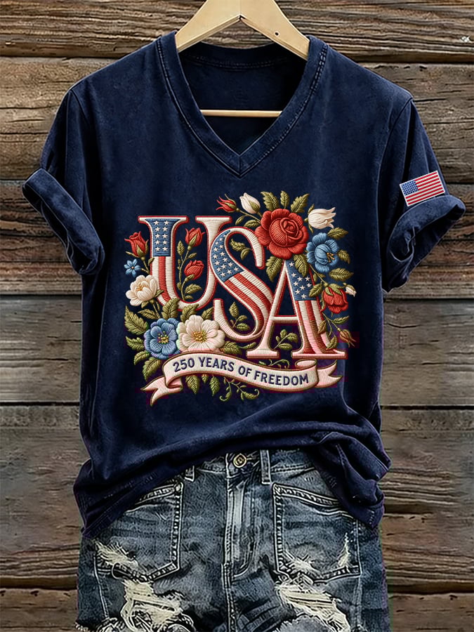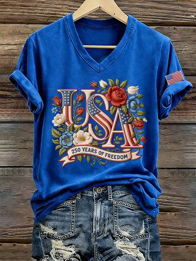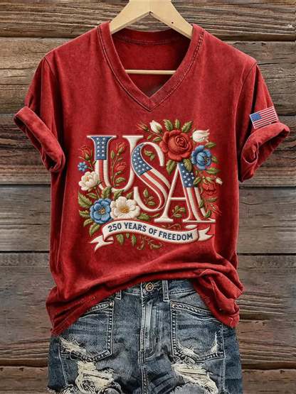 Women's 250 Years Of Freedom Print V Neck T-shirt – lolonb