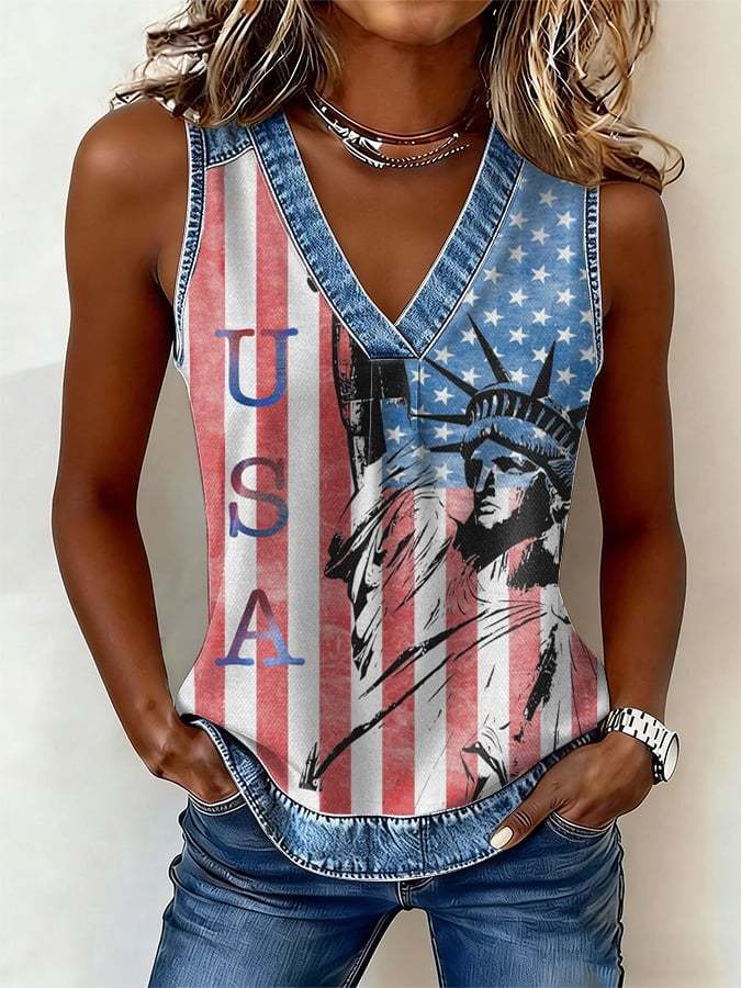 Women's 250th Anniversary Print Casual V-Neck Tank Top