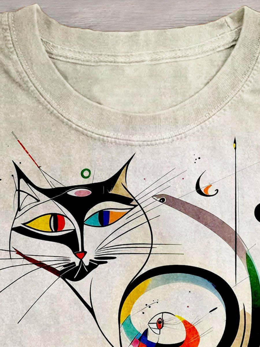 Funny Picasso Abstract Cat Art Design T-shirt