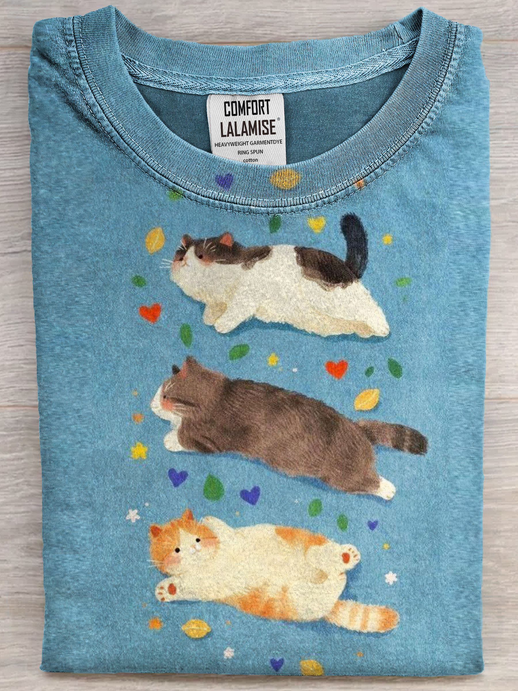 Funny Cute Cat Art Print Casual Cotton Short Sleeve T-shirt