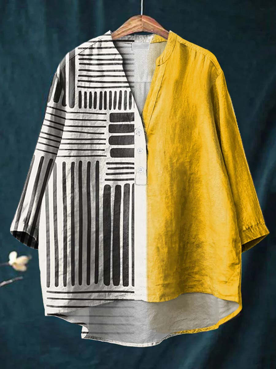 Women's Geometric Pattern Art Print Casual Cotton And Linen Shirt