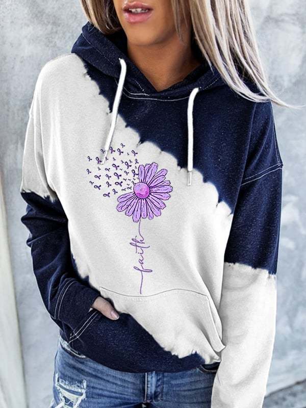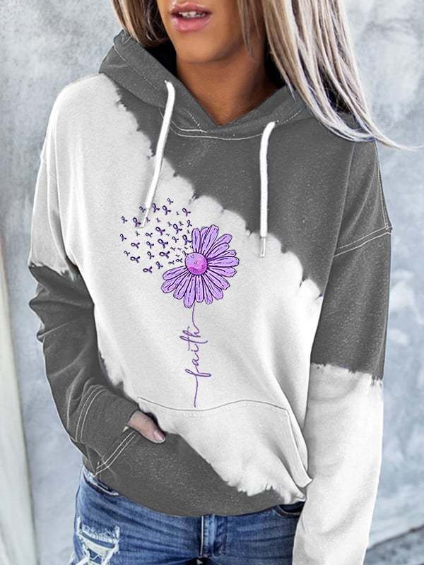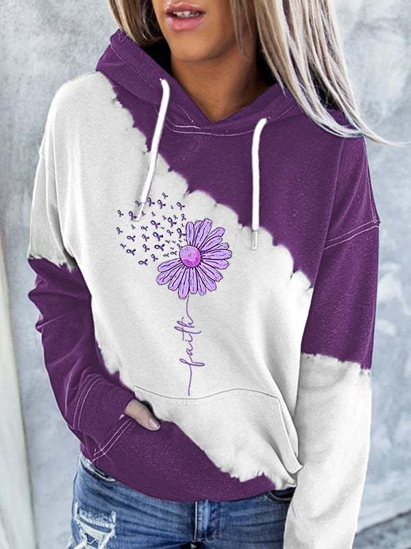Women's Sunflower Purple Ribbon Faith Alzheimer's Awareness Warrior Supporter Hoodie